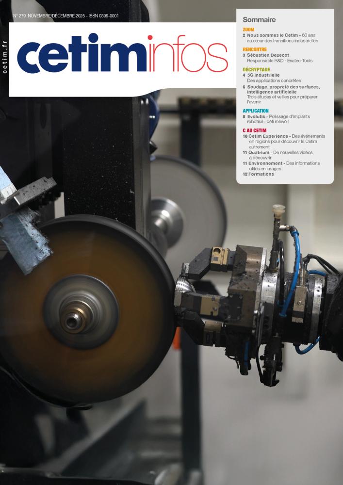 Magazine phare du Cetim, Cetim Infos est le lien privilégié avec les 7 000 entreprises mécaniciennes. Il a pour vocation de transmettre les informations les plus pertinentes pour soutenir la « cause industrielle ». Sous différentes rubriques, tous les projets, actions, résultats, etc., permettent au lecteur d’être au cœur de l’actualité technique et culturelle de la vie mécanicienne.