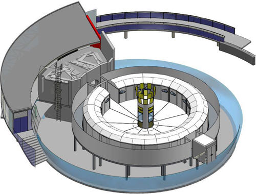 L’équipement est similaire, dans son principe, à une centrifugeuse : la rotation exerce une accélération sur les utilisateurs, qui sont installés dans des cabines.