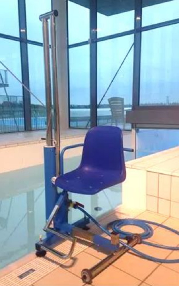 Ce système permet aux utilisateurs de fauteuil roulant, aux personnes âgées, aux femmes enceintes d'entrer dans l'eau et d’en sortir aisément. Ce siège ascenseur hydraulique pour piscine municipale est utilisable sur plusieurs bassins d'un même établissement (avec plusieurs socles scellés en place).