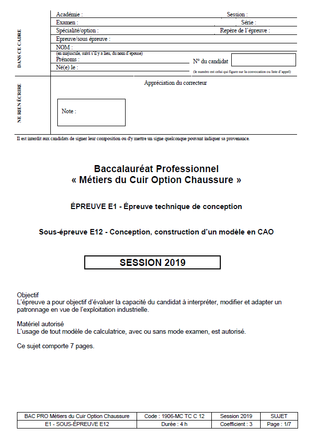 L’étude porte sur la modification d’un modèle Derby montant, en cuir de veau, doublé chèvre. Le nouveau modèle sera plus bas par souci d’économie de matières. La répartition des oeillets et crochets sera modifiée pour faciliter l’enfilage. La ligne du bout sera modifiée. Une baguette arrière se terminant par un passe doigt sera ajoutée afin de supprimer le jointé arrière des quartiers, supprimant ainsi les superpositions d’assemblages (dessus et doublure).