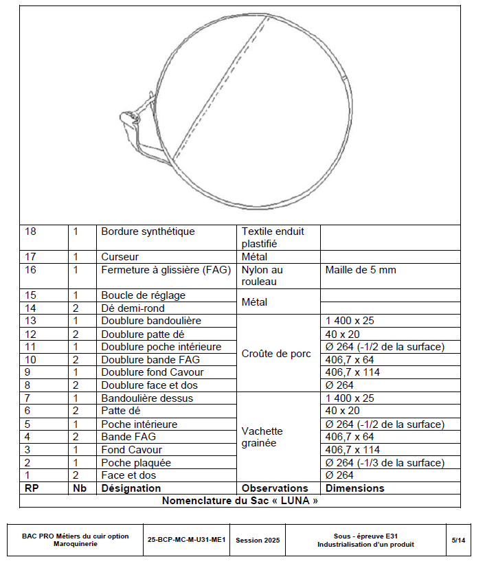 Un travail d’étude du sac « LUNA » est demandé par le responsable du bureau d’études de la société « Mon sac en Cuir ». Par la suite, une commande spéciale sera lancée.