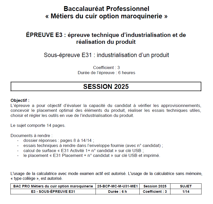 • réaliser l’étude des surfaces et savoir si le stock est suffisant au magasin des cuirs ;