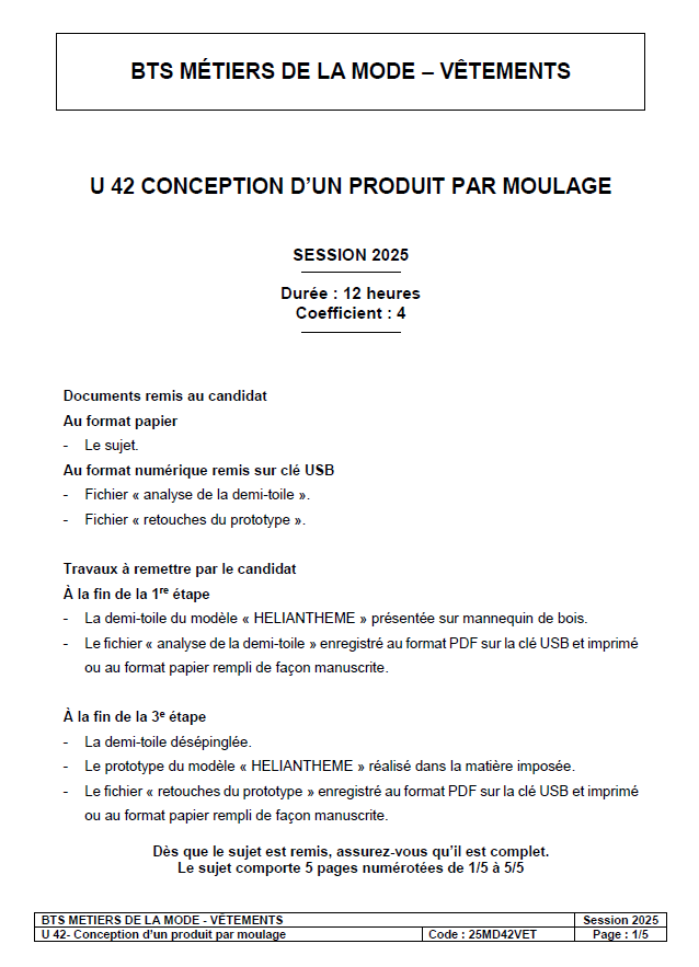 1.1 Réaliser la demi-toile de la veste « HELIANTHEME » par moulage. Effectuer le réglage et présenter la demi-toile épinglée sur mannequin de bois.