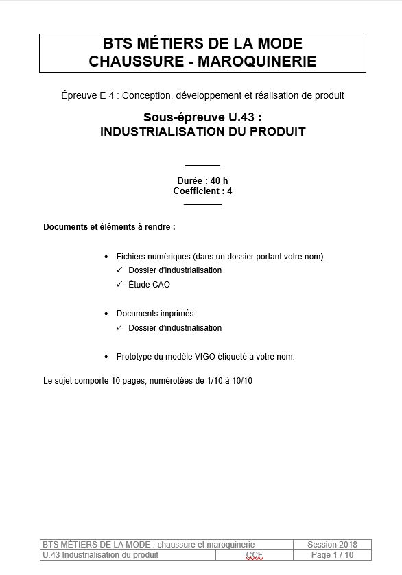Sujet pouvant servir à évaluation de l'unité U43 Industrialisation du produit du BTS MMCM