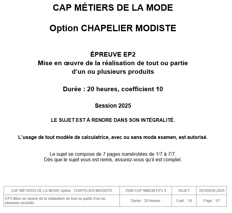 Étape 9 – Contrôler la réalisation du chapeau cloche « Borsalino ».