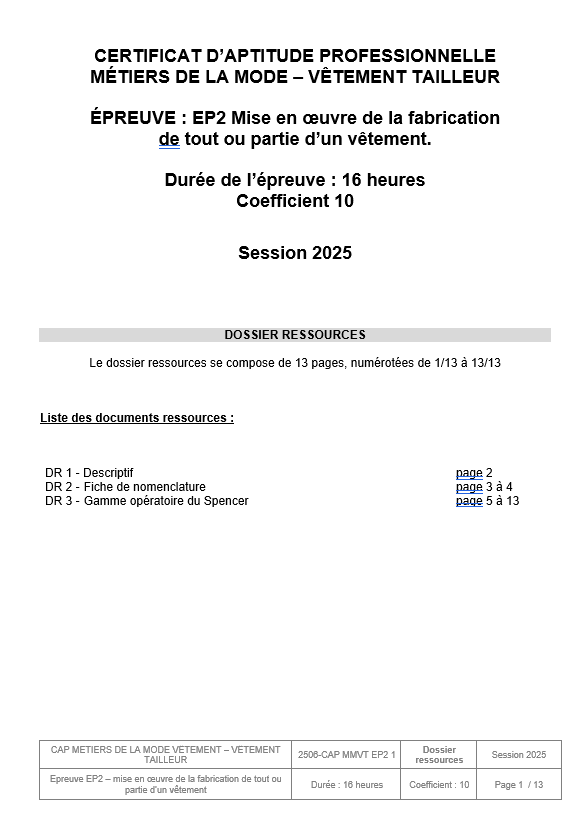 L’entreprise ALPHA spécialisée dans la confection de vêtement masculin, s’est lancée vers cette mode de l’unisexe afin d’acquérir une nouvelle clientèle. Travaillant dans cette entreprise en tant que prototypiste, on vous demande de réaliser un Spencer « unisexe » sans doublage, en vous basant sur le basique le plus vendu de la collection précédente.