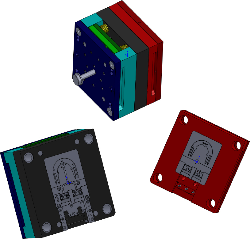 La société Wirquin située à Carquefou est un fabricant d'articles et d'accessoires sanitaires. Elle développe, conçoit, et réalise les outillages ainsi qu'elle transforme les pièces plastiques. Les pièces réalisées dans l'outillage ont chacune une fonction dans un ensemble nommé RESERVOIR UNI COMPACT - La référence M080036 est une pièce qui permet de maintenir une gaine d’évacuation (gaine flexible annelée) d’eau du réservoir de chasse d’eau à la cuvette de toilette. - La référence M080022 est un clip qui permet de positionner et de maintenir un robinet de remplissage de réservoir sur un réservoir plastique. A chaque moulée, trois pièces en polypropylène sont injectées. L'alimentation est du type avec déchet en PIN POINT. La pièce M080022 présente une contre dépouille, le démoulage est du type tiroir. L'éjection s'effectue avec une batterie guidée, éjecteurs et rappel par ressort. Les parties fixe et mobile du moule sont régulées de la plaque porte empreinte jusqu'à l'empreinte.