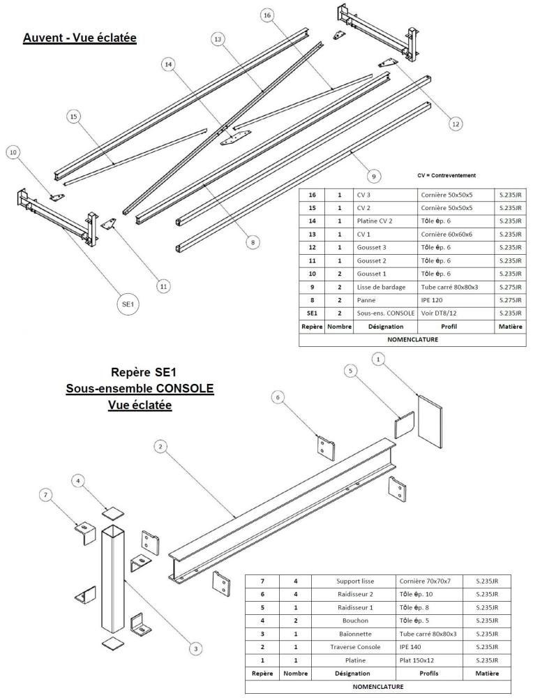 Mise en situation : Vous êtes chargé de la réalisation des auvents équipant les files A et E.