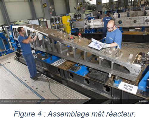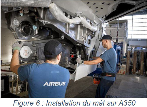 - de supporter le moteur, - de transmettre les charges au caisson de l'aile ou du fuselage, - de soutenir et acheminer les systèmes hydrauliques, électriques, air, fuel, etc... Une fois assemblés, testés, et qualifiés, les mâts réacteurs sont expédiés vers les lignes d’assemblages finales des avionneurs, pour être montés sous les voilures des avions avant de recevoir les réacteurs.