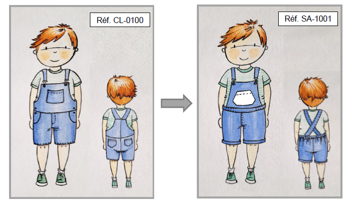 Une entreprise de mode enfantine située dans le Puy de Dôme souhaite enrichir son catalogue. La styliste, responsable de la nouvelle collection Printemps/Été, ambitionne de créer un nouveau modèle inspiré de la biennale de l'illustration de Moulins. Ce modèle de salopette courte est destiné aux jeunes enfants âgés de 3 à 18 mois.