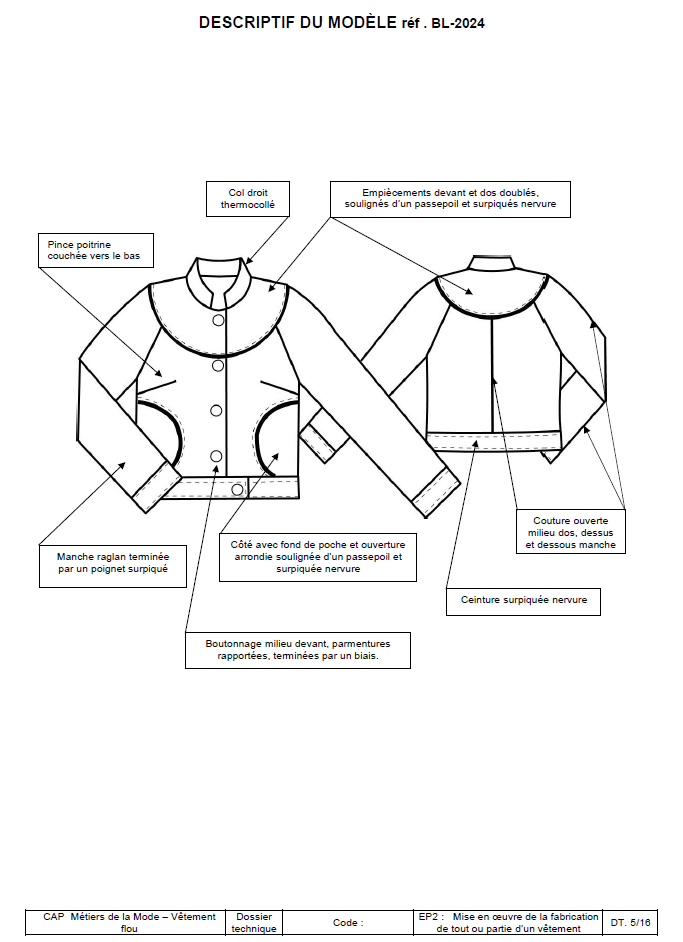 Après la mise au point du patronnage et du dossier technique, le modèle est à confectionner, tout en respectant les règles de sécurité et d’ergonomie, les délais ainsi que les exigences de qualité.