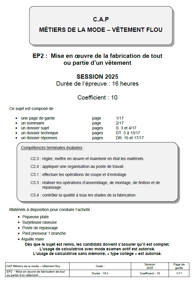 C3.3 : réaliser les opérations d’assemblage, de montage, de finition et de repassage.