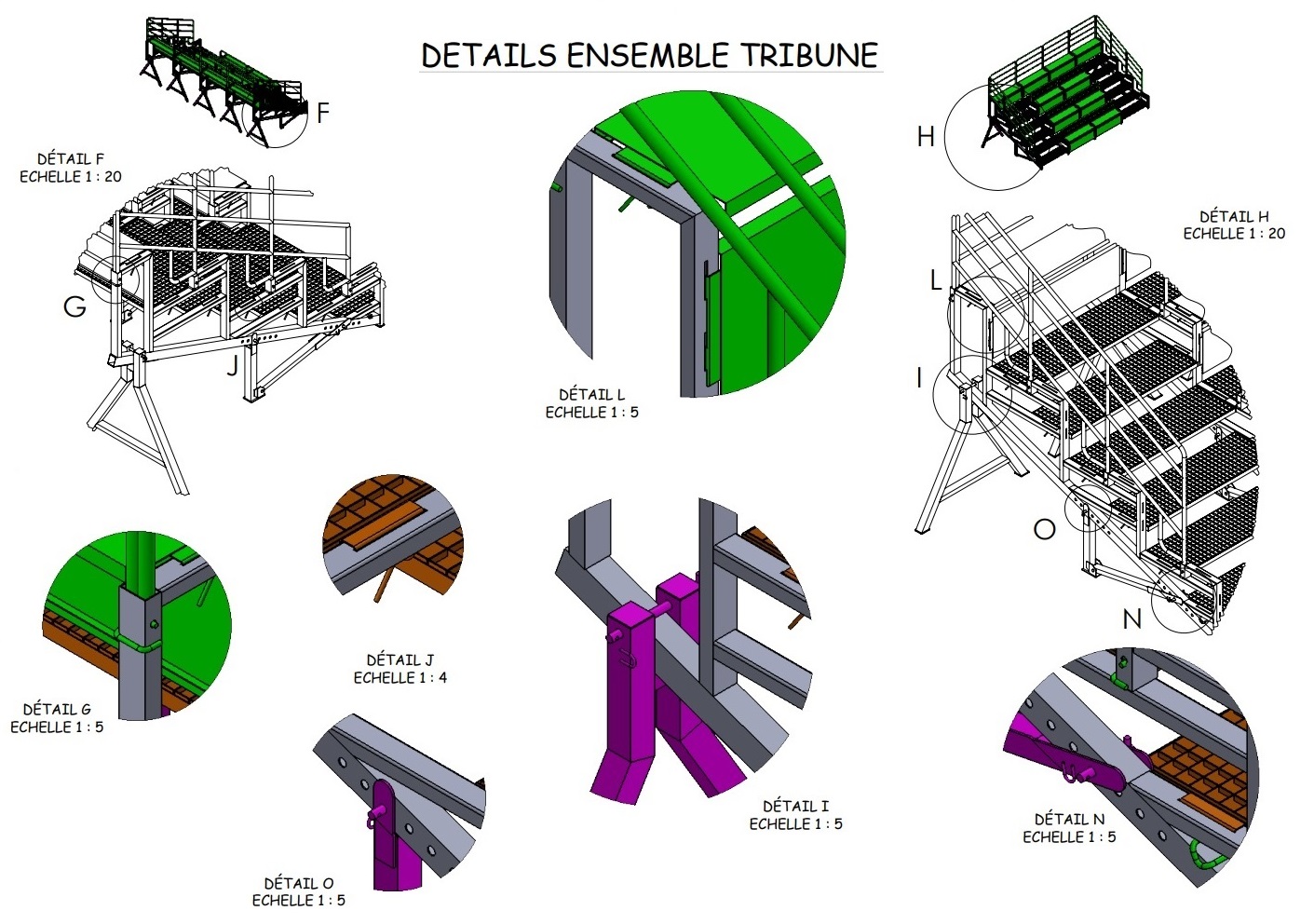 Le projet est une tribune démontable, de capacité raisonnable c’est-à-dire, plutôt plusieurs petits modules d’environ une trentaine de personnes mais avec quand même la possibilité de monter une tribune de longueur pouvant contenir une bonne centaine de personnes.