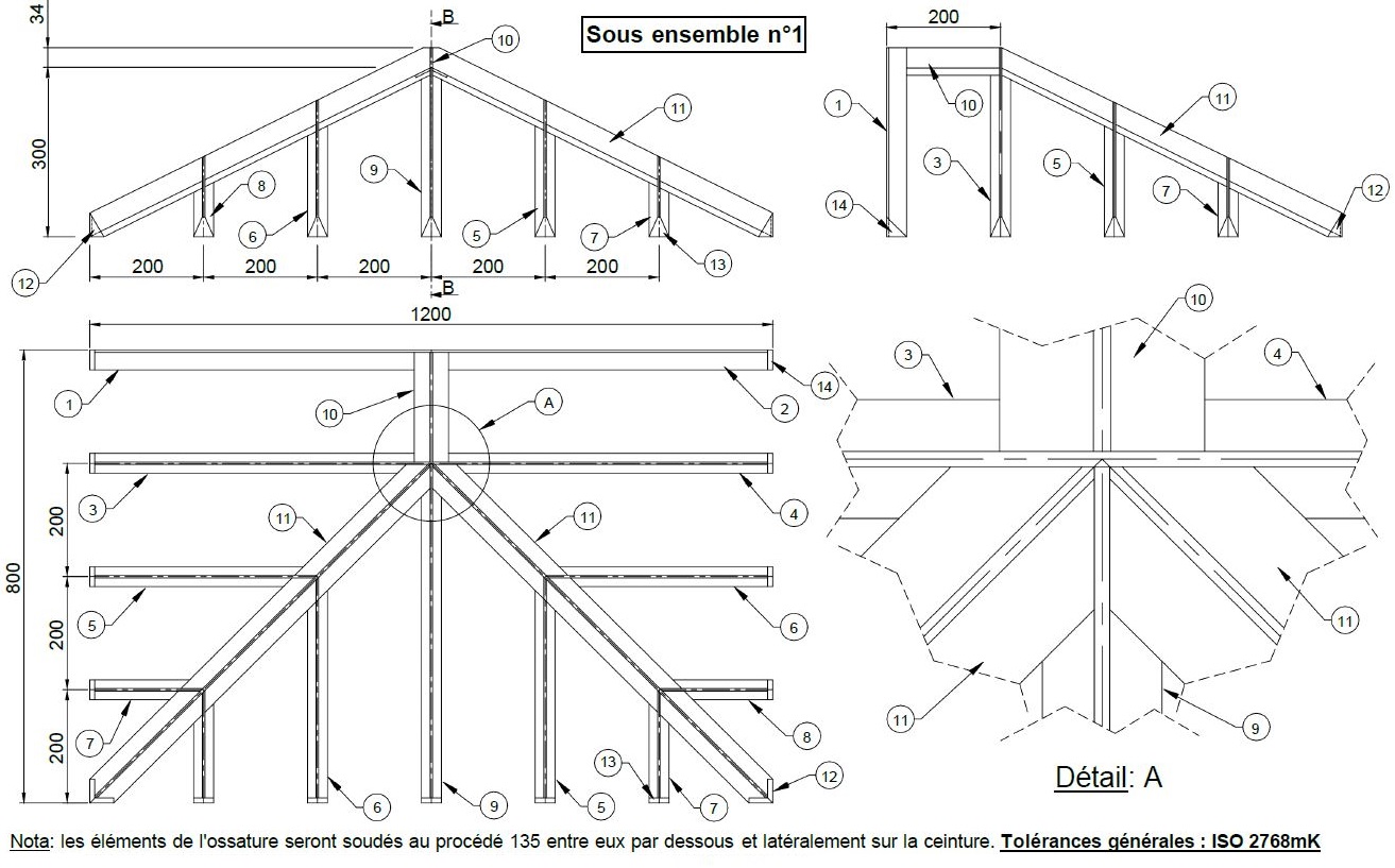 Cette réalisation complète sera fournie prête à peindre, par procédé thermolaquage et respectera la norme ISO 2768mk.