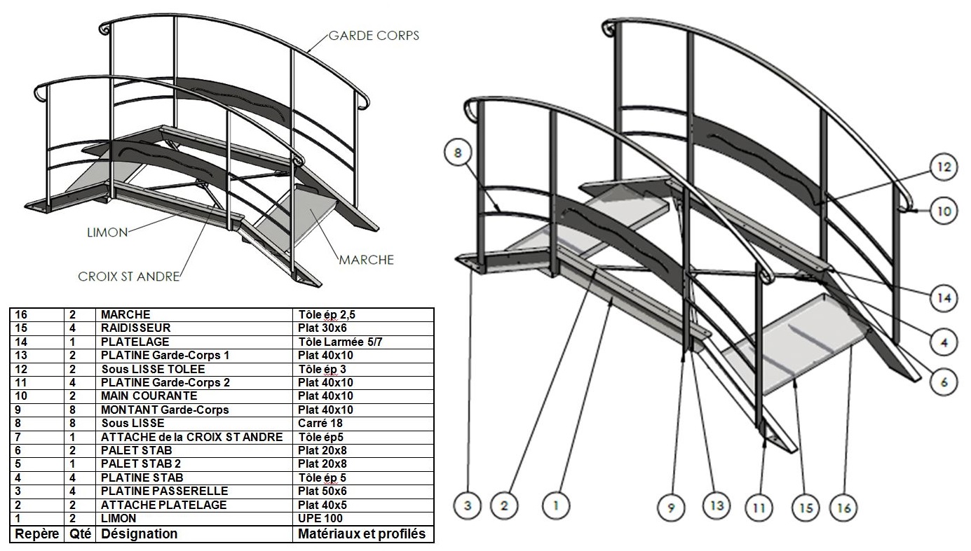Votre entreprise a remporté le marché pour les différents ouvrages de serrurerie, du projet POL. Dans la répartition des taches, votre employeur vous demande de fabriquer la passerelle.