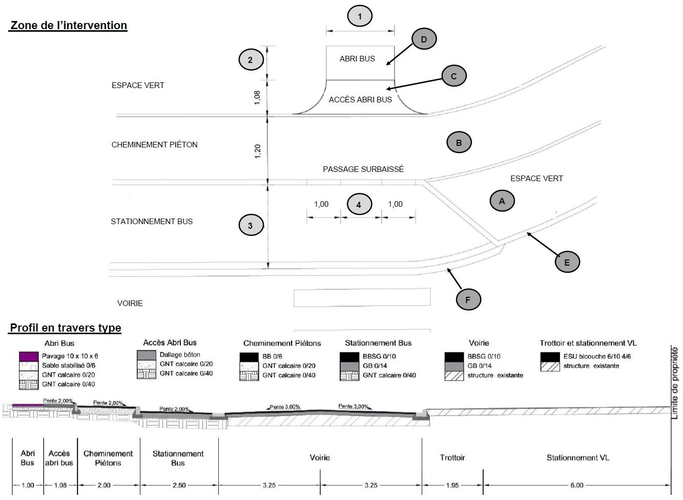Il faut créer un accès et une zone pour un abri bus. Votre responsable de chantier vous confie sa réalisation.