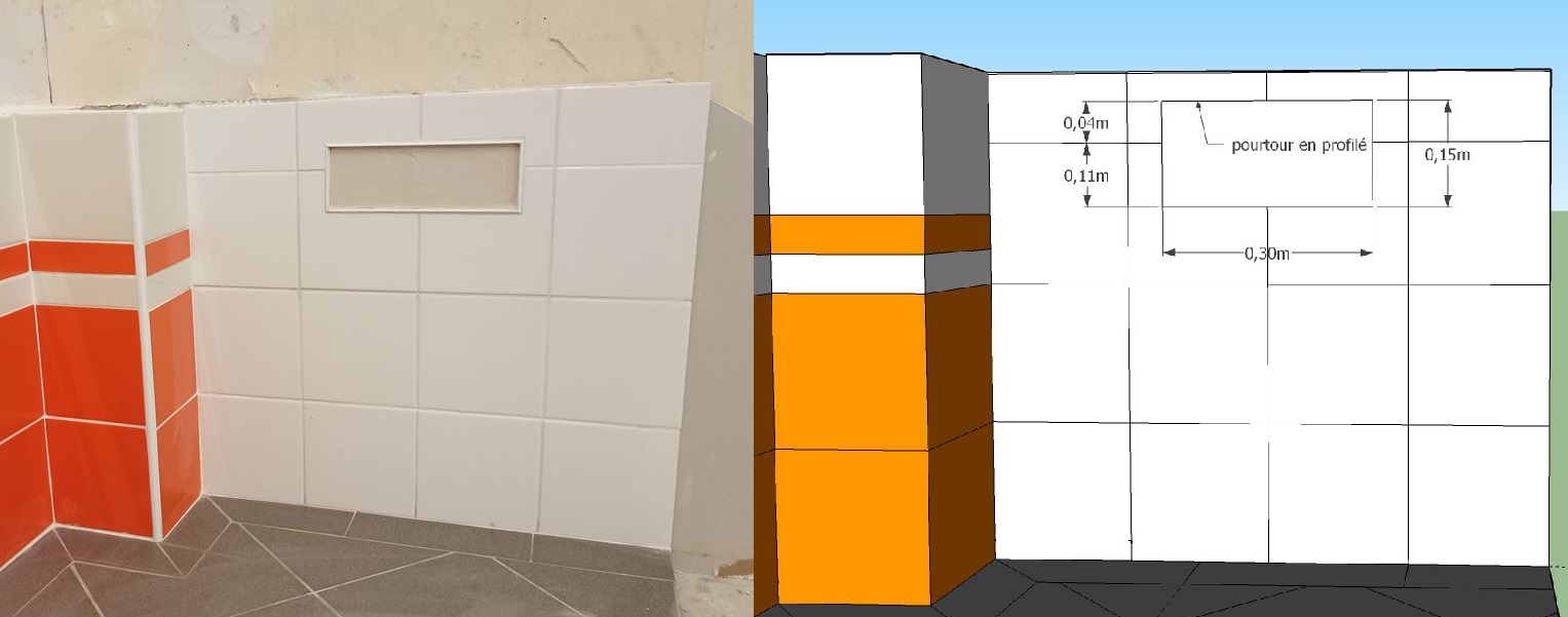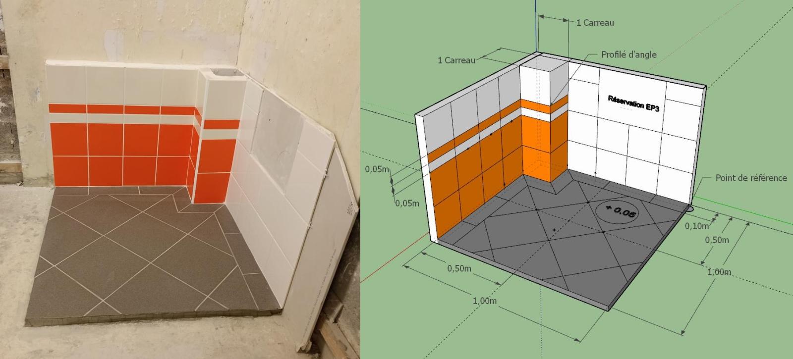 Votre entreprise a été retenue pour effectuer l’ensemble des travaux de carrelage dans la salle de bain. Votre chef d’équipe vous confie la réalisation du sol, l’habillage des murs et la réalisation d’un caisson.