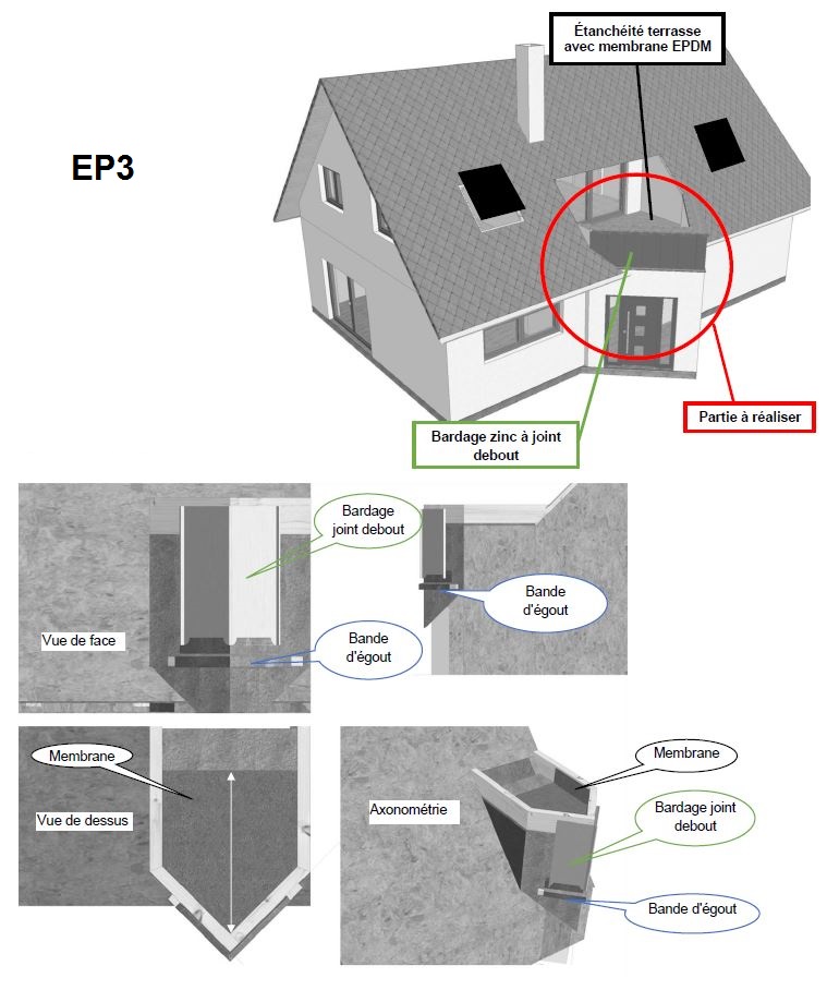 On vous demande de réaliser l’étanchéité de la terrasse et la mise en œuvre du bardage zinc à joint debout.