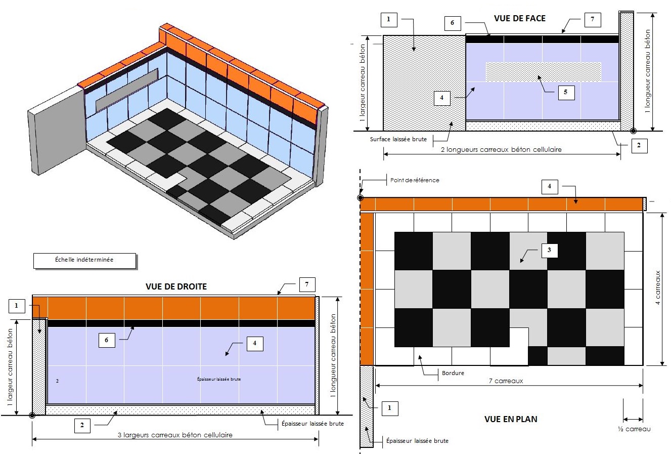 Votre entreprise a été retenue pour effectuer l’ensemble des travaux de carrelage. Votre chef d’équipe vous confie la réalisation partielle du sol et des murs de la salle de bain n°1.