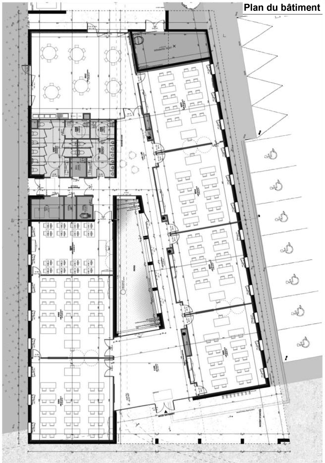 À celles-ci s’ajoutent un local serveur, un local copieur, un local électrique (TGBT), un local ménage et des sanitaires femmes (8 toilettes), des sanitaires femmes PMR, des sanitaires hommes (2 toilettes et 6 urinoirs) et des sanitaires hommes PMR.
