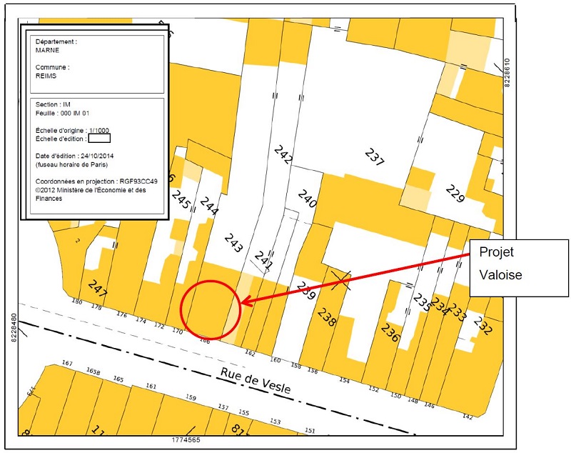 La Société SCI Valoise, déjà propriétaire des parcelles cadastrées section IM, N°241 et N°242 à Reims, souhaite acquérir la parcelle contigüe N°243. La SCI Valoise a pour projet, si le PLU de la Ville de Reims l’y autorise, la démolition du garage existant sur la parcelle N°243 puis la construction d’un immeuble comportant un local commercial et 9 logements. Dans le projet, il est prévu un accès au bâtiment en empruntant le porche du bâtiment existant depuis 2010 sur les parcelles N°241 et 242. Le projet compte 17 places de stationnement. Vous êtes chargé d’étudier la conformité du projet par rapport au PLU de la Ville de Reims.