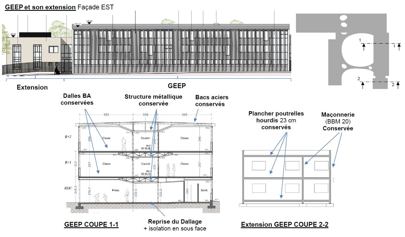 Il comprend également la réhabilitation lourde d’un bâtiment existant destiné à l’école primaire et maternelle.