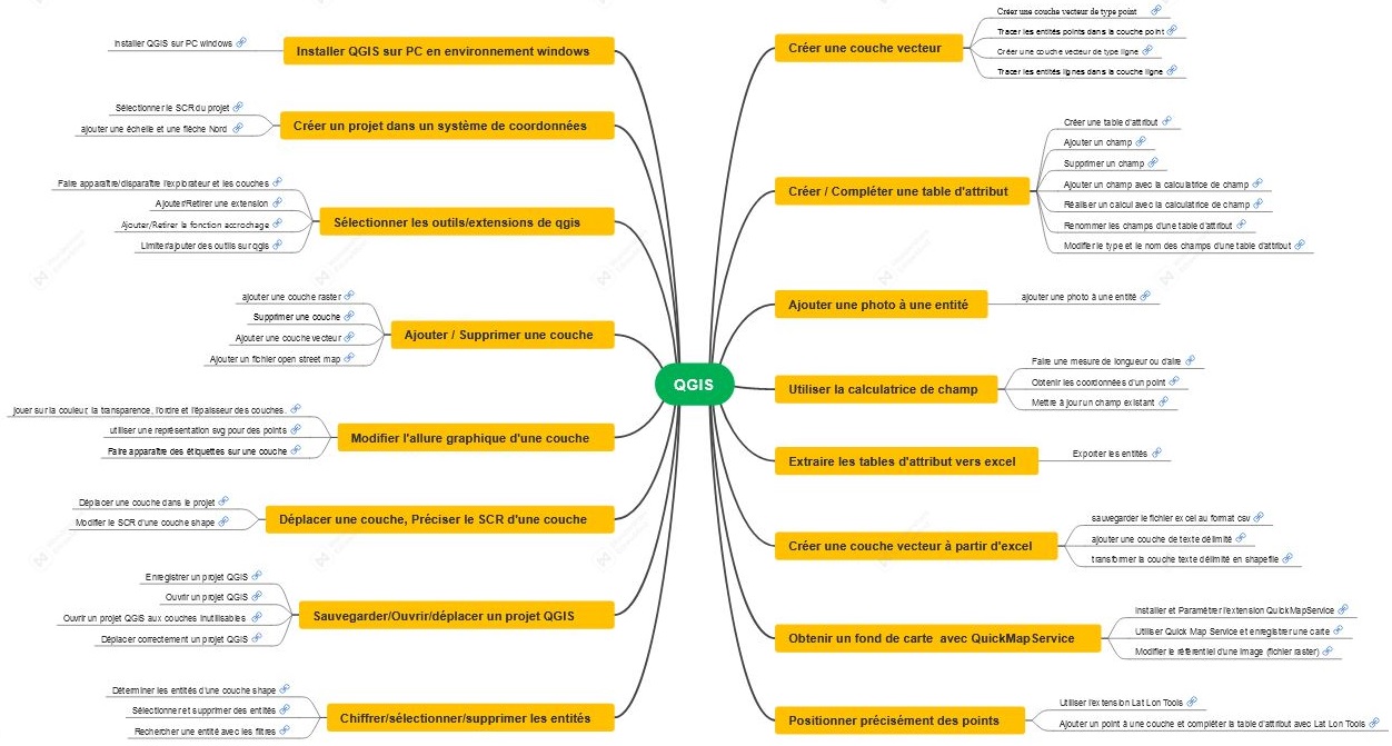 L’utilisation de la carte mentale QGIS permet de progresser de manière autonome dans l’utilisation du système d’information QGIS.