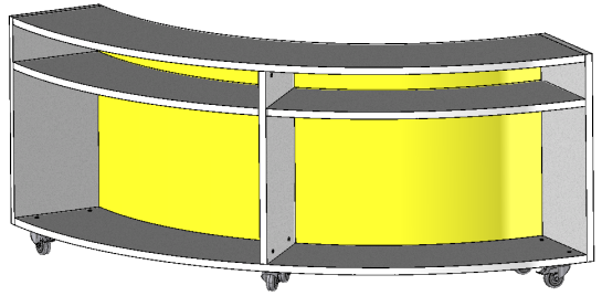 Une entreprise de 42 personnes spécialisée dans l’agencement a développé un concept d’aménagement d’espace à base de deux types de meubles de forme arrondie qui, mis bout à bout peuvent délimiter des zones tout en maintenant un visuel entre elles. Les 2 éléments existent en 2 versions avec un plexiglass coloré positionné à l’intérieur de la courbe ou à l’extérieur ce qui donne 4 éléments différents (longueur et positionnement du plexiglass).