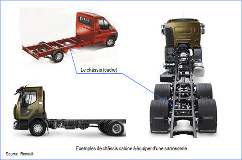 Le travail principal du carrossier constructeur consiste à équiper un véhicule "non terminé" que l’on appelle souvent châssis cabine. Le châssis est aussi appelé "cadre" et fait partie intégrante du véhicule.