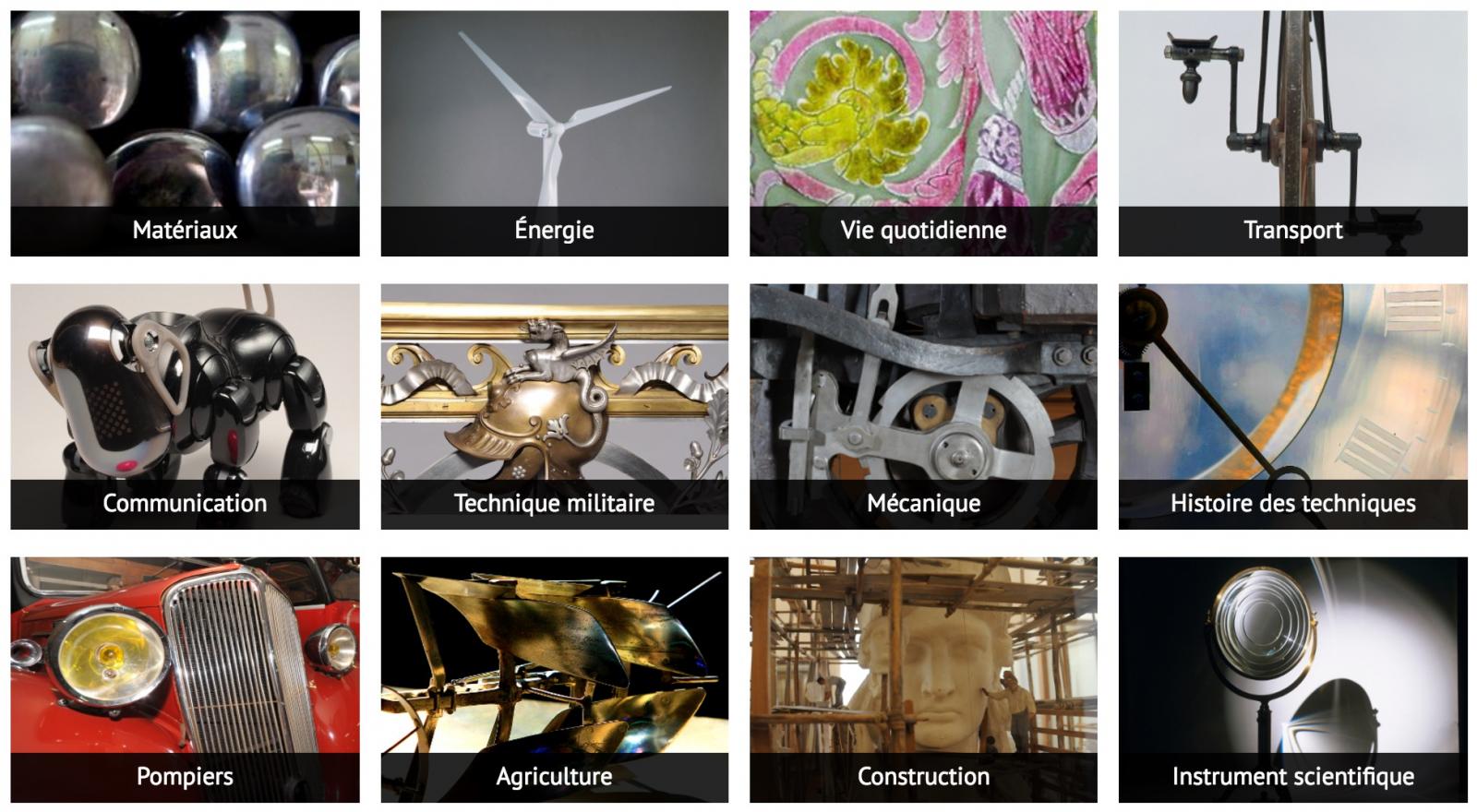 L'accès aux contenus du site s'organise de manière thématique en 12 catégories : Vie quotidienne, Agriculture, Technique militaire , Énergie, Pompiers, Matériaux , Histoire des techniques, Mécanique, Transport, Construction, Instrument scientifique , Communication. Chacune de ces catégories recense les musées, les événements ainsi que les actualités liées au domaine en question. Il est possible de lancer une requête intra-site selon 2 modes, simple et avancé. Les résultats de la recherche peuvent être ensuite filtrés par domaine, lieu, musée ou tag. Outre l'interrogation de type textuel, la plateforme offre l'avantage de repérer sur une carte de France les musées, les événements ainsi que les expositions et autres nouveautés. Les deux rubriques A ne pas manquer et Actualités permettent enfin de se tenir informé des différentes manifestations en cours et à venir sur le territoire national.