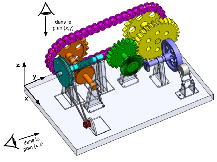 Cette séquence, proposée par MM. Bellache Farid et Hivert Christophe, a pour but de découvrir, en première STI2D de l'enseignement Innovation Technologique (IT) et par prolongement en terminale STI2D de l'enseignement Innovation Technologique et Eco-Conception (ITEC), les transmetteurs des mouvements. La séquence permet dans un premier temps de définir le vocabulaire associé (roue, engrenage, contact, sens et vitesse de rotation, rapport de transmission) pour permettre d'étudier, par expérimentation, différents types de transmission (courroie, vis sans fin, chaîne, engrenage, roue) puis de les modéliser dans le plan sous forme de schéma cinématique normalisé. Dans un second temps, des exercices d'application permettent de remobiliser les notions, notamment via l'étude d'un convoyeur élévateur dans un centre de triage d'aéroport. Enfin, en enseignement spécifique, une activité d'assemblage par logiciel de CAO permet d'appréhender les subtilités du paramètrage des transmissions par simulation.