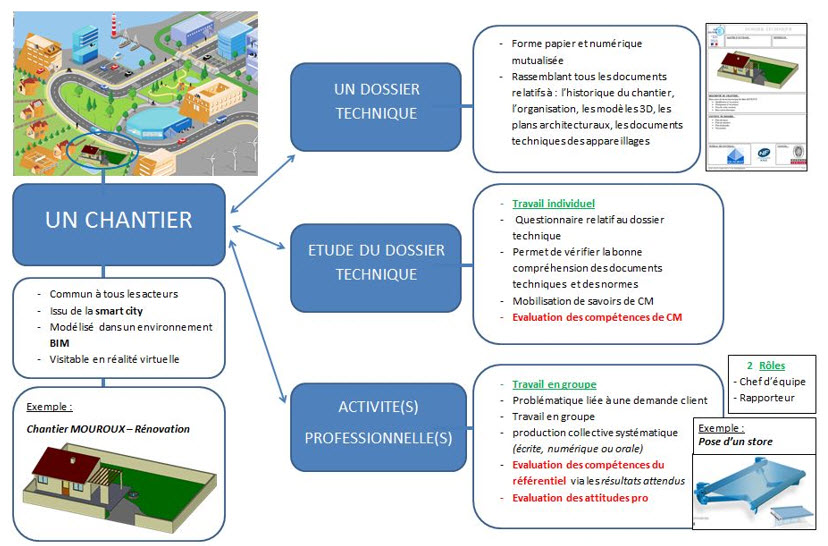 On reproduit, en situation, des activités du Référentiel des Activités Professionnelles d’un diplôme. Chaque tâche décrite aide à la réalisation du script des situations choisies pour simuler l’activité réelle d’un technicien. On peut ainsi créer notamment les situations professionnelles auxquelles on n’expose pas un jeune stagiaire durant les périodes de formation en milieu professionnel.