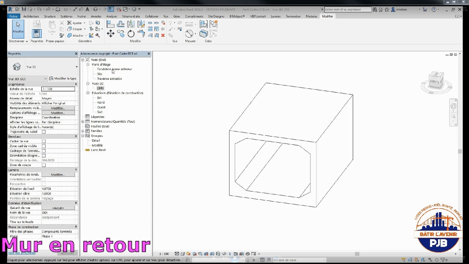 - 01-Ouvrir Revit - 02-Environnement de Revit - 03-Réglage des niveaux - 04-Cadre - 05-Mur en retour - 06-Mur en aile - 07-Poutre de couronnement - 08-Joint sec - 09-Béton de propreté
