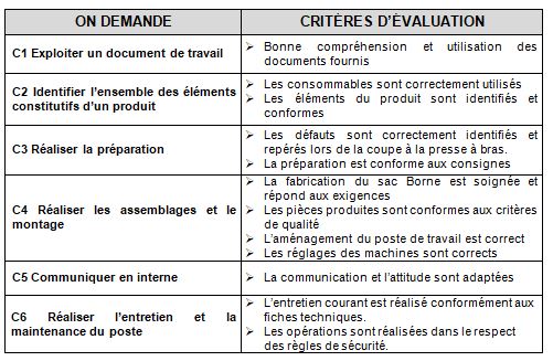 L’élève doit être capable de réaliser la préparation et le montage du sac BORNE.