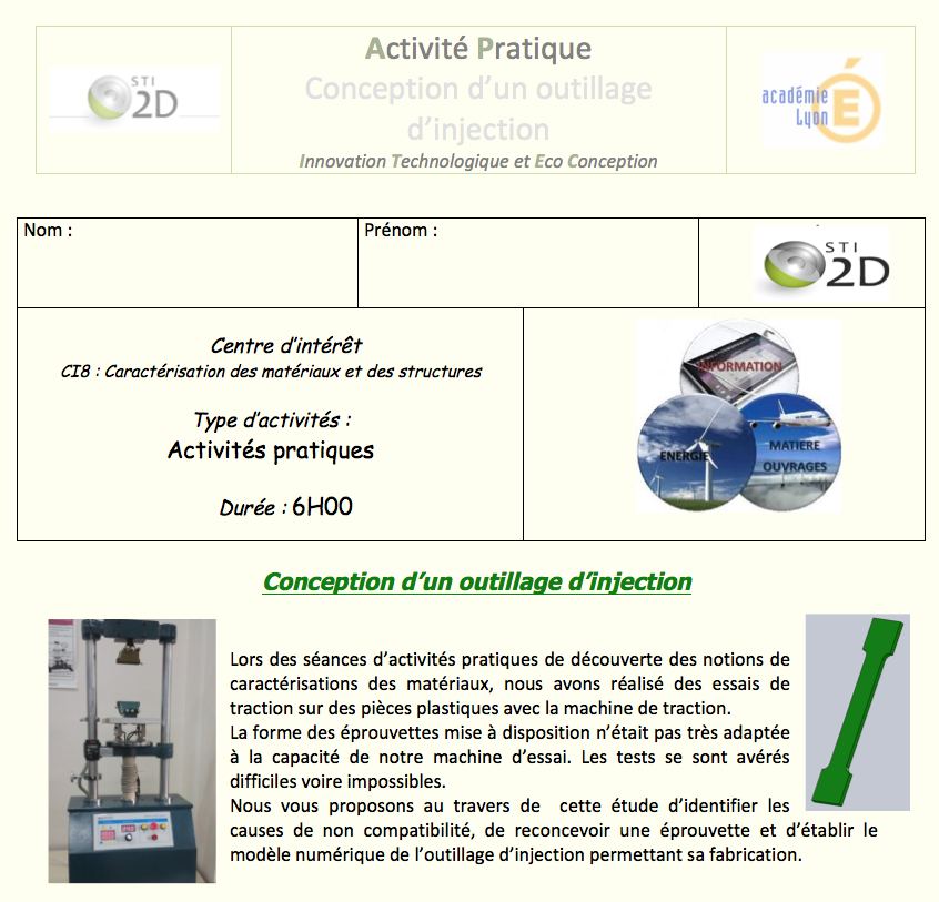 C'est donc une activité de reconception de l'éprouvette puis de conception du moule d'injection plastique pour sa fabrication qui est ici proposée.