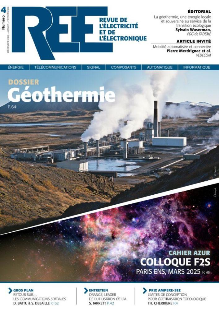 Le lecteur retrouvera aussi un Gros plan consacré aux communications spatiales (D. Battu & S. Debaille), ainsi qu’un article proposé par l’unde lauréats du prix de thèse Ampère-SEE 2024, portant sur les limites de conception pour l’optimisation topologique (Th. Cherrière). Enfin, un Cahier azur rassemble les principales contributions du colloque F2S (Paris ENS, mars 2025) sur l’astronomie spatiale et le New Space.