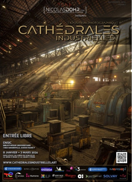 ► Exposition photographique « Cathédrales Industrielles » : L’ENSIC accueille dans les locaux de l’Université de Lorraine l’exposition photographique itinérante « Cathédrales industrielles » de Nicolas DOHR, photographe et vidéaste indépendant spécialisé en prises de vues d’entreprises. 45 photos grand format qui permettent de redécouvrir la beauté brute et souvent méconnue d’installations industrielles, toujours en pleine activité, toutes implantées sur le territoire du Grand Est.